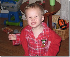Our youngest is also trying to prove that he does not have a speech delay. He’s constantly talking (although not necessarily intelligible) and his most recent favorite words are “NO!” and “Mc-Non-nos” (McDonalds). He now calls for mommy from his crib in the morning and after naps instead of crying. It would be impossible to list all the words he uses on a regular basis, but suffice it to say Nathan is my chatty one.